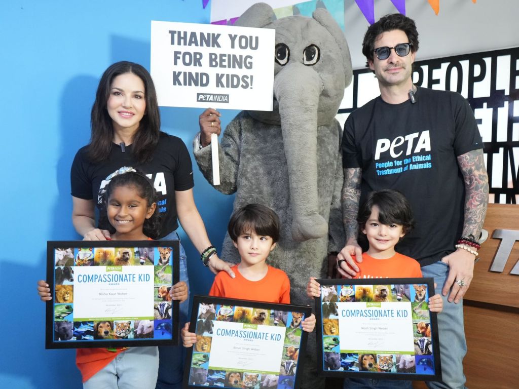 Sunny Leone shared her perspective on nurturing kindness towards animals in her children, stating, “I teach my children to be kind to animals to help them grow into adults who will be kind to everyone. Kind children today mean a more peaceful society tomorrow.” Leone’s commitment to instilling empathy in her children resonates deeply with the core values of PETA India’s Compassionate Kid Awards.